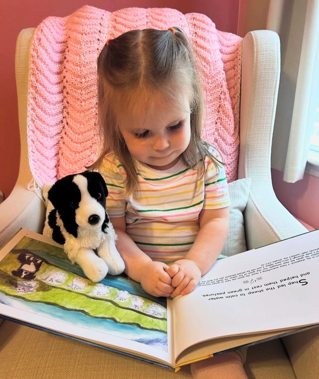 Thank you so much @changetheworldwithjesus for the wonderful package we received! loved the book about Shep! The stuffed animal helped her with creating her own visual of what the illustrations showed. She really enjoyed tracking the lines of the braille card included.